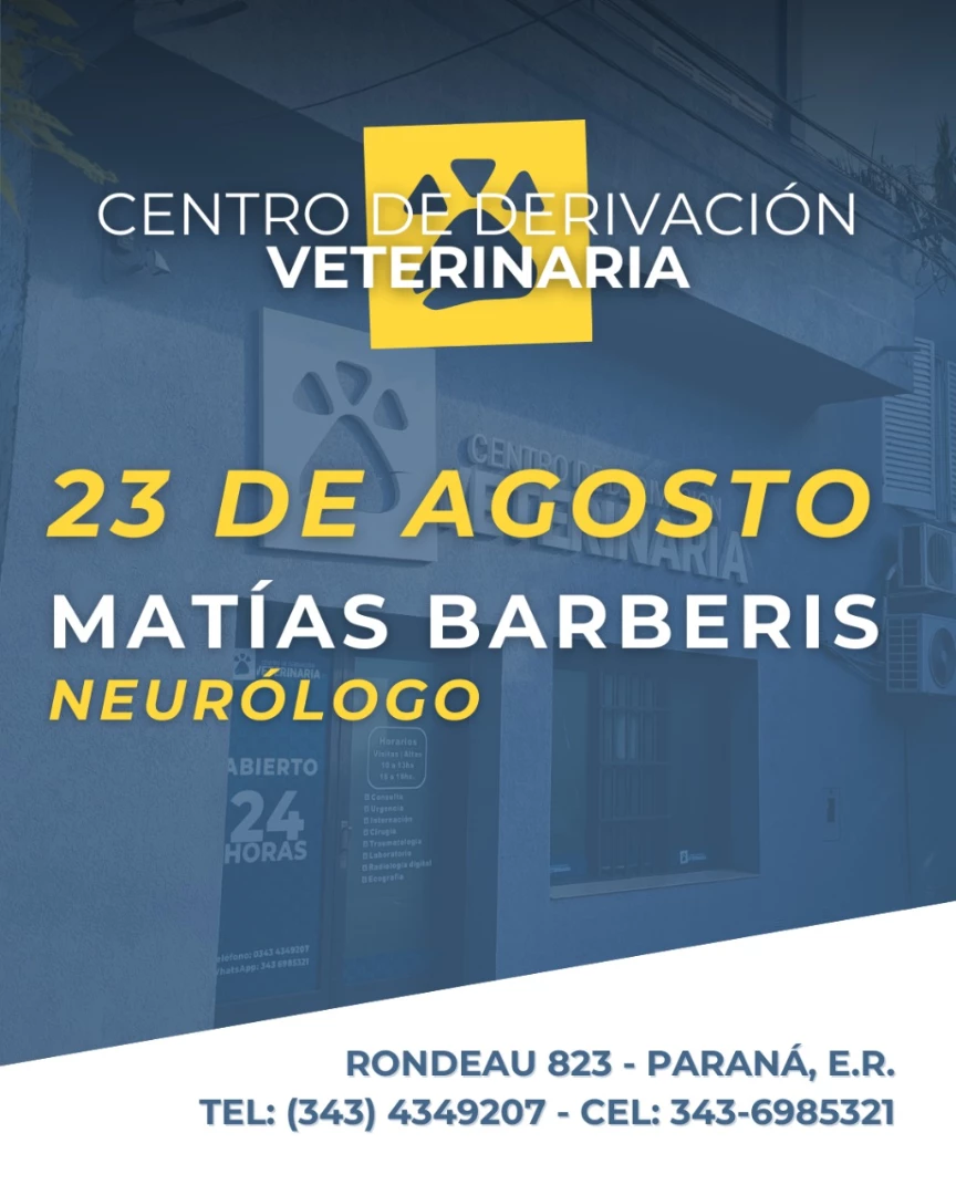 novedades 15 agosto, 202526 agosto, 2025 novedades 👨🔬 El Dr. Matías Barberis estará atendiendo el 23 de Agosto en nuestro Centro Veterinario. 📲 Turnos con anticipación al: 3436985321 📍 También podés encontrarnos en Rondeau 823 (a metros de Churruarín)